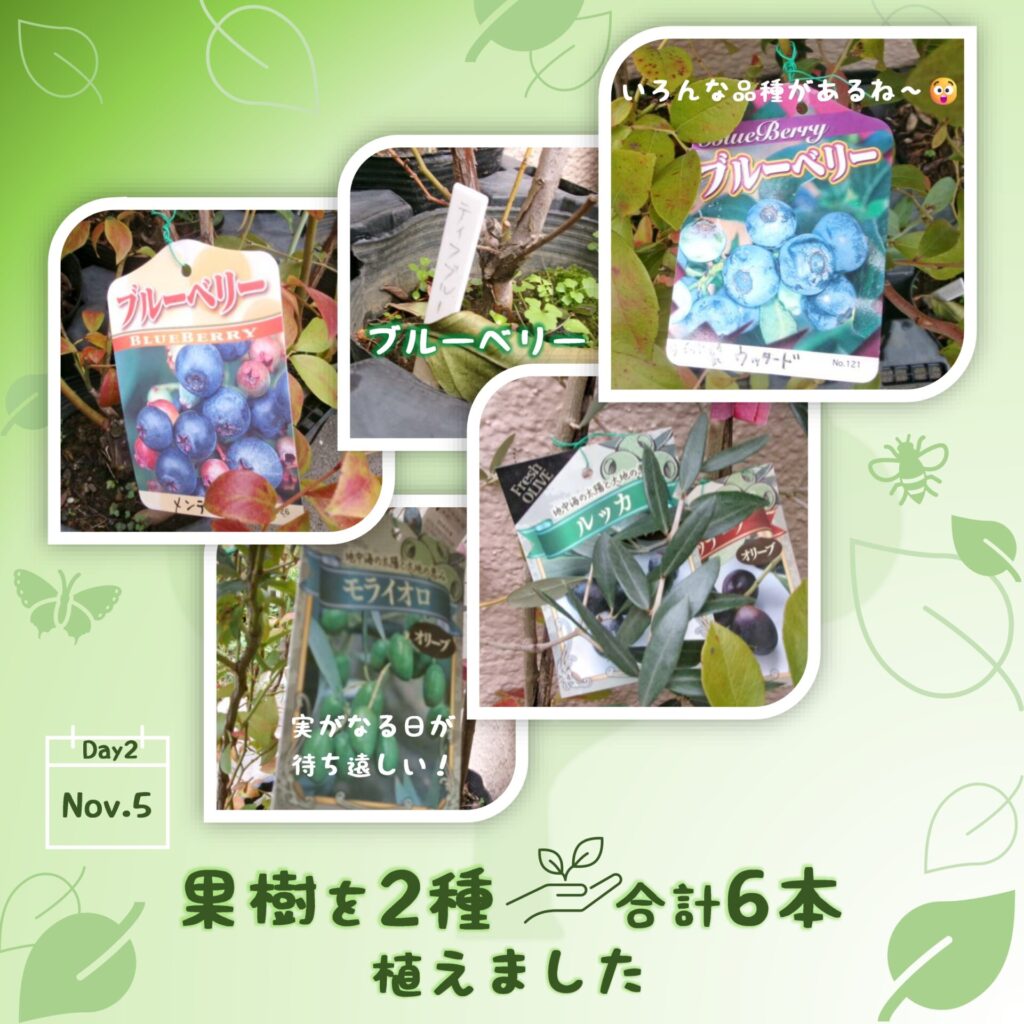 まず、どんな苗木や花苗を植えるか、有志のみんなで話し合いました。様々な意見が出ましたが、やはり実のなる果樹を希望する声が多かったので、初心者でも育てやすいといわれている「オリーブ」と「ブルーベリー」を選びました。花は一般的に広く親しまれているパンジーやハーブ類、さらに狭山市に縁のある「カタクリ」も植えてみよう!という流れになりました。