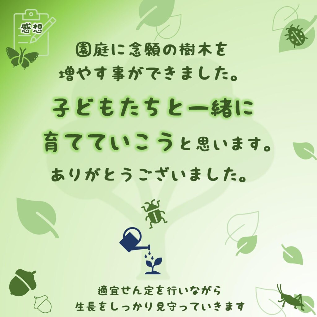 子供たちと一緒に木の生長を見守りながら、楽しい発見がたくさんできたらいいなと思っています。
