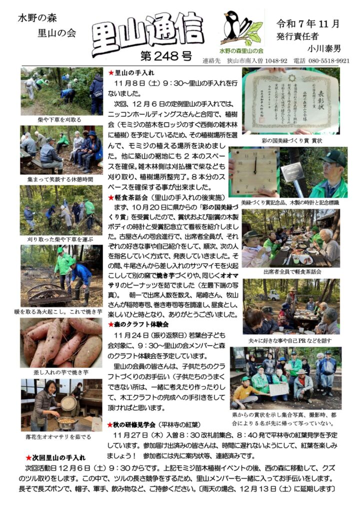 水野の森里山の会では毎月第1土曜日の午前、定例的に里山の手入れをしています。活動内容は下記の観点で月々の活動内容が分かるよう里山通信にまとめて毎月発行しています。