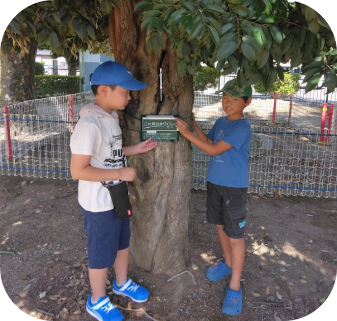 3枚の樹名板の木は子供たちが選び、樹名板の取り付けに携わりました。樹木に触れ、木の名前も覚えてもらい、とても素晴らしい活動になりました✨✨