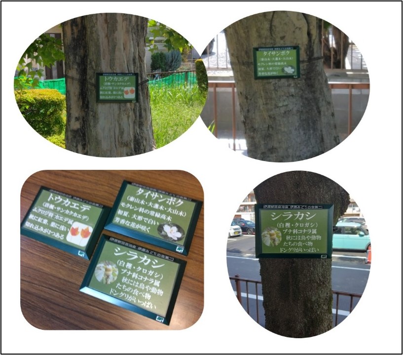 小学生2名を含む伊原みどりの会メンバー4名で、南部第五公園内の木に樹名板を取り付けました😊