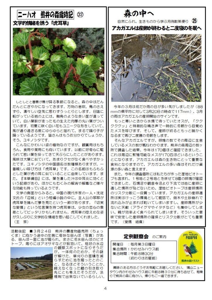 🌱NPO法人はとやま環境フォーラムの活動報告・活動予定・連載コラムが掲載されている「熊井の森通信」(毎月1日発行)