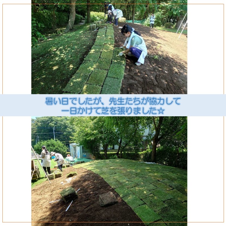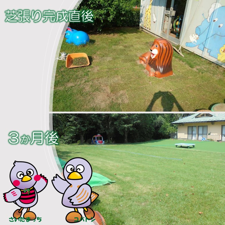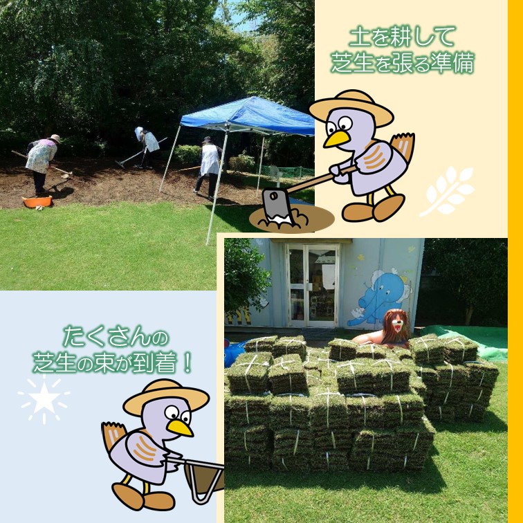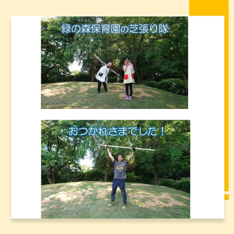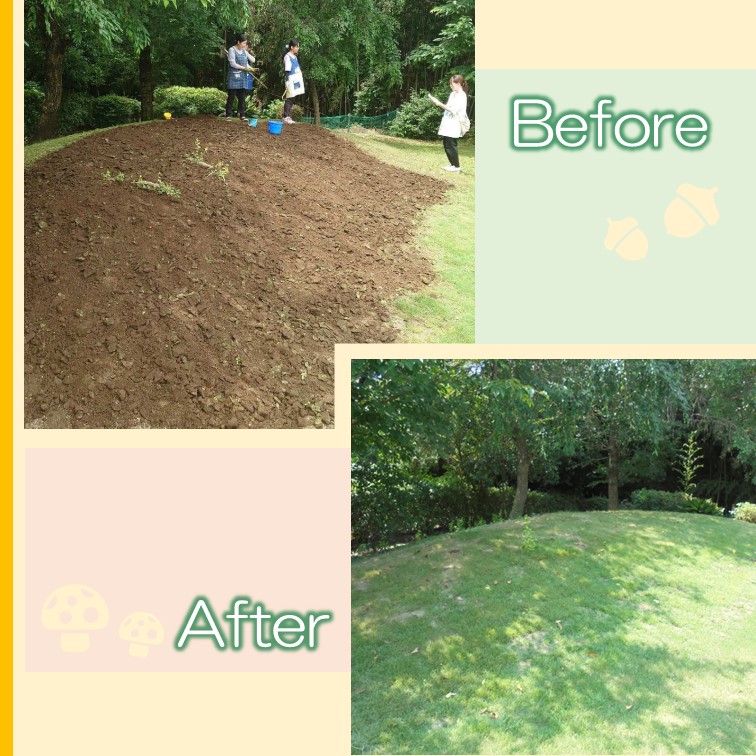 ▼感想 一週間前に築山の土を耕し、準備を行った。 当日は気温が非常に高く、芝の量も多いため一日がかりの作業となった。作業後の散水が甘かったため、一部の芝が変色してしまったが、何とか持ち直せました。 ▼今後の維持管理 3週間ほど朝夕の水やりを行い、その後芝の状態を確認しながら適宜芝刈り、散水、施肥を行っていく。
