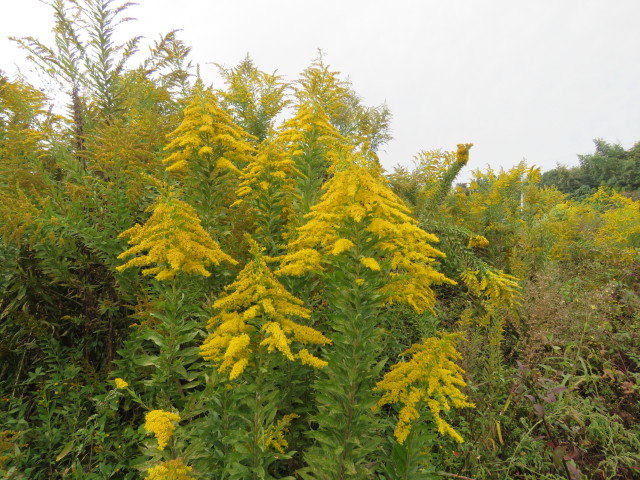 前半、桶川オアシスの南域に繁茂したマダケ切り。オアシス内の遅咲きキクイモ開花、セイタカアワダチソウ満開。