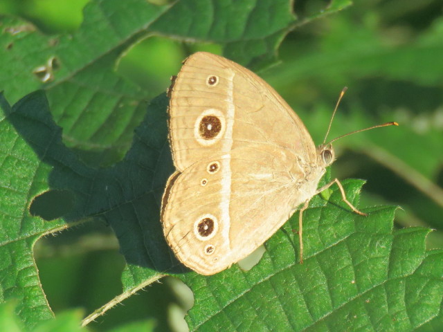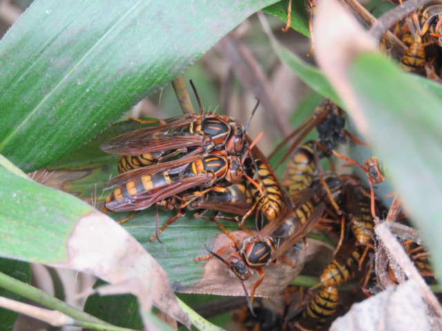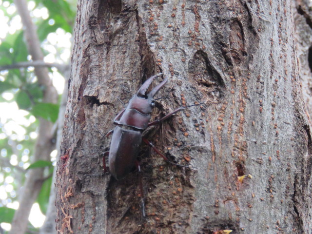 竹切り中に観察したセグロアシナガバチ、ヒメジャノメ、タチヤナギ幹上にノコギリクワガタ。