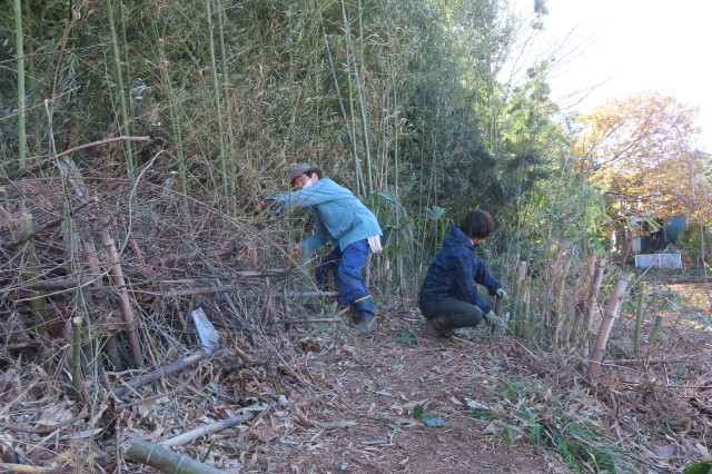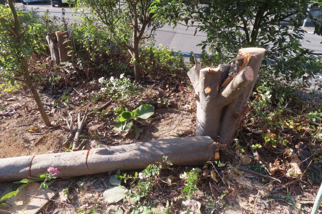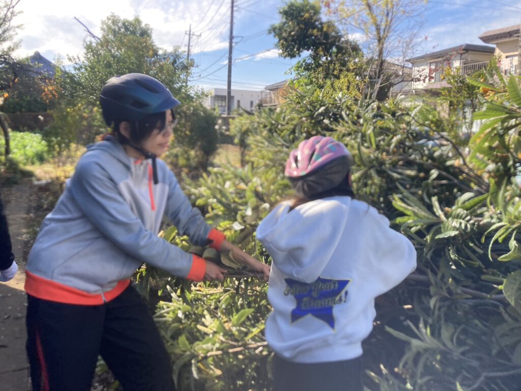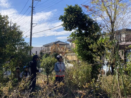 緑のオアシスの竹切り、樹木の伐採(ビワ、ハナミズキ、エノキ、プラム)、草刈りなど