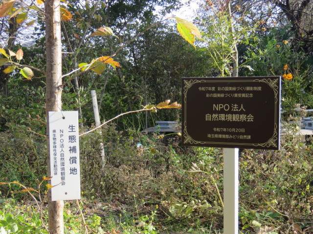 2025年11月、生態補償地(緑のオアシス)に毎週出かけ観察と保全を行った。11月になり、大分涼しくなってきた。昆虫、クモ類は越冬準備に入った。観察した主な生き物は以下の通り。