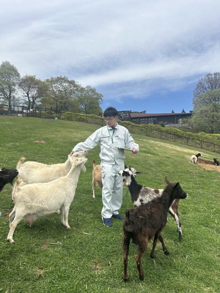 今回、いろいろお話をうががった、「彩の国ふれあい牧場」の担当藤田さん。ヤギたちに大人気です🐐