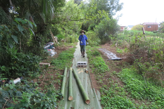桶川オアシスで草刈り終了後、竹を切り、近くの幼稚園で教材用に太目の竹が入用とのことで謹呈した。