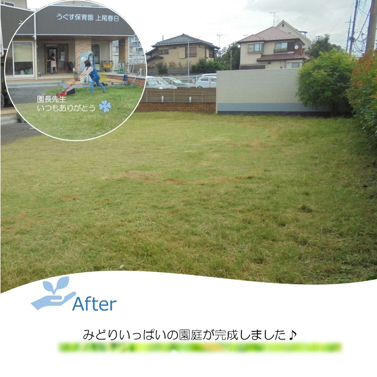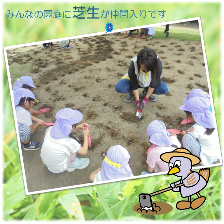 ▼感想 子どもたちにも穴を掘ってもらい、最初から最後まで行うことができ、楽しんでいました。 ▼今後の維持管理 水やり、雑草取りを行い、芝生を育てていく。