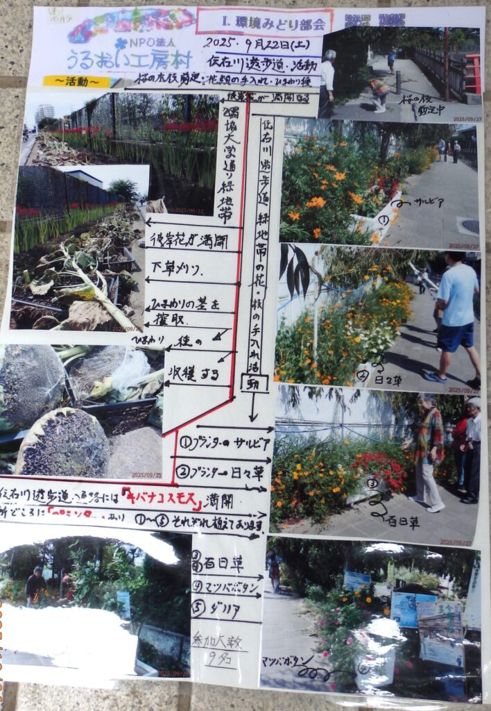 伝右川遊歩道において、花の手入れと桜の剪定作業を行いました😊