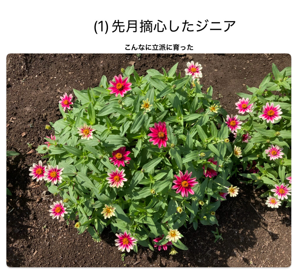 先月敵心したジニアが立派に育ちました。
