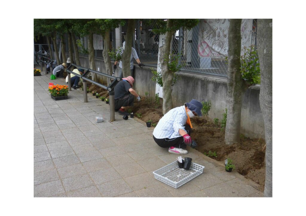 JR栗橋駅東口花壇及びJR踏切横花壇の1年を通した美化活動を推進中。今後は、花壇内の緑化活動を通して、緑の保全及び創出活動に取り組む。