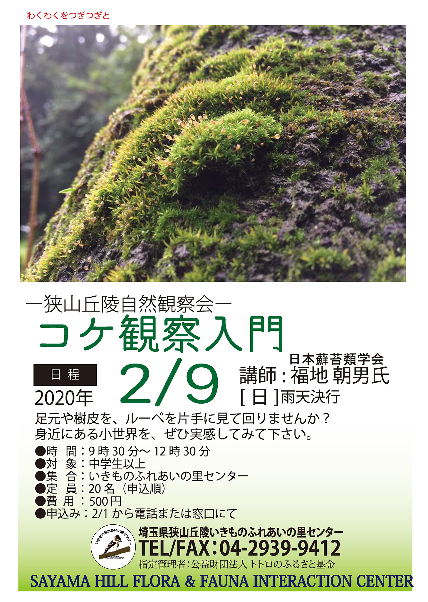 2月1日(土曜日)9時より電話04-2939-9412へお申し込みください。