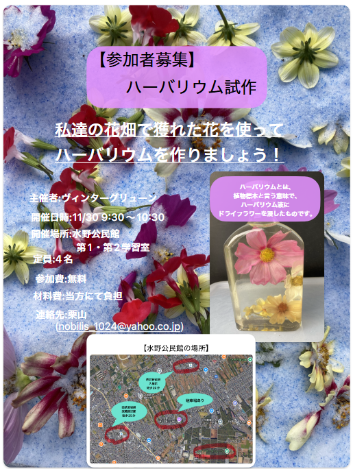 私たち(ヴィンターグリューン)の畑で採れた花で、ハーバリウムを一緒に作りませんか🌹