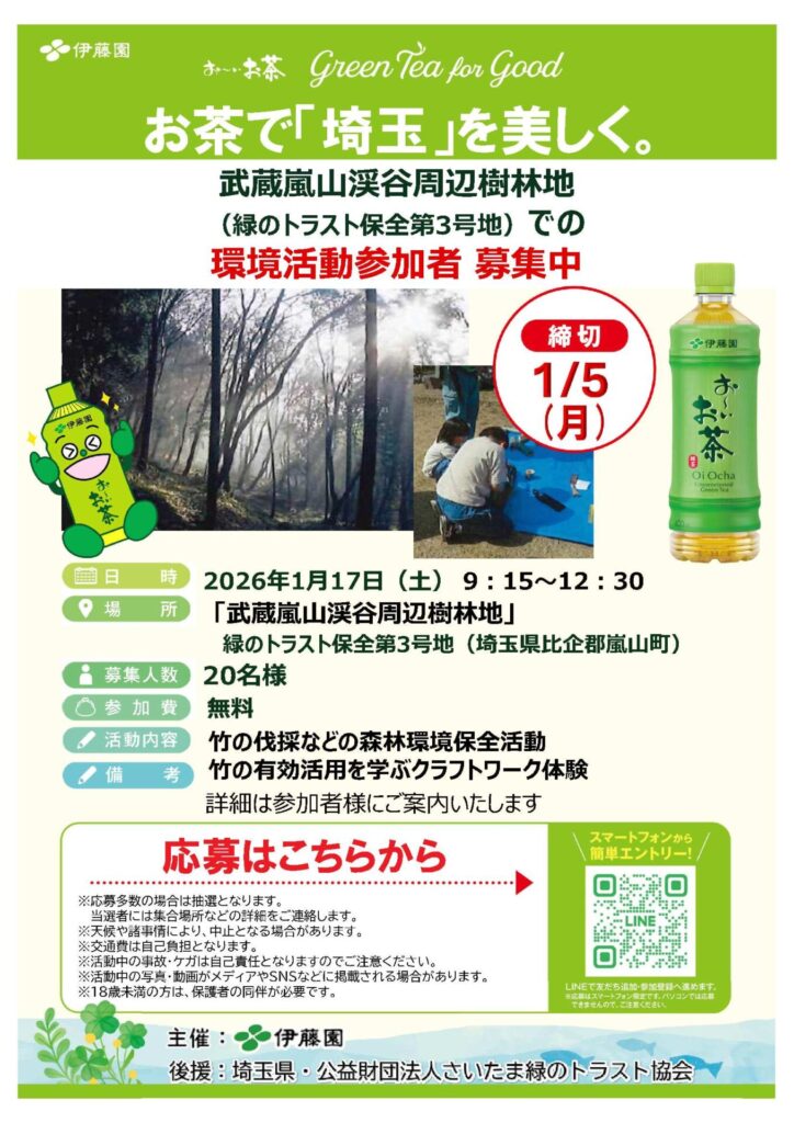 【参加者募集】株式会社伊藤園主催森林環境保全活動「お茶で埼玉を美しく。」