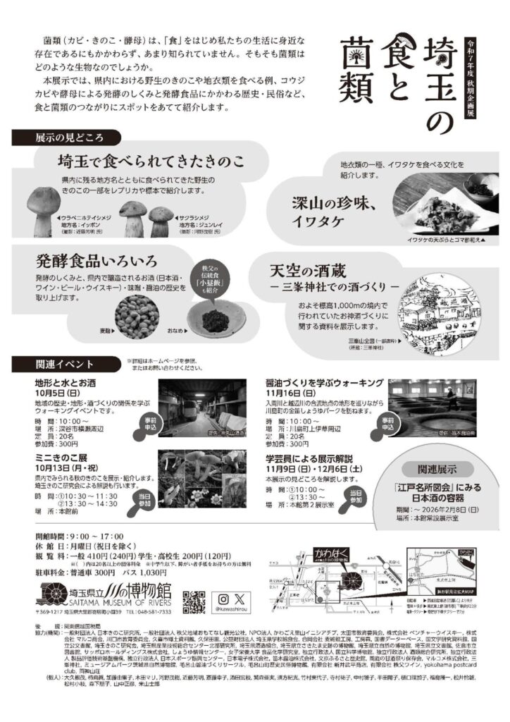 菌類について知識を深めるとともに、埼玉に根付く食の魅力を再発見できる展示となっています。ぜひ、おいしい菌類の世界をお楽しみください🍄