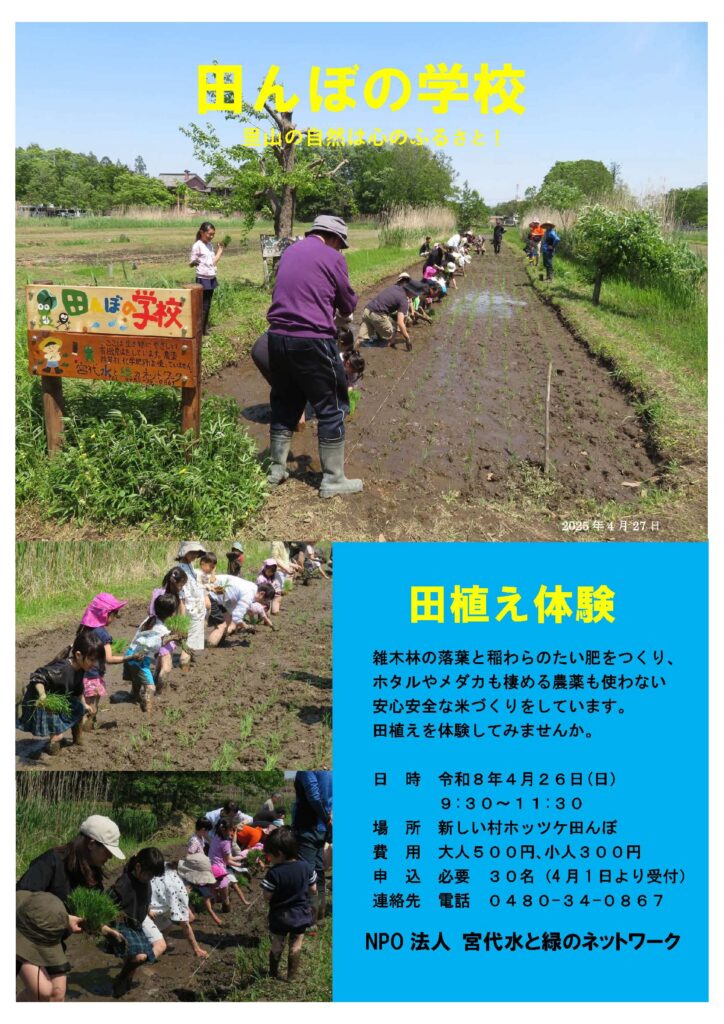 4月1日(水曜日)より電話受付。NPO法人宮代水と緑のネットワーク 電話 0480-34-0867