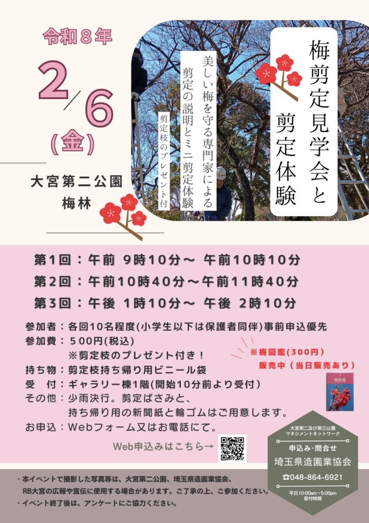 【参加者募集】県営大宮第二公園梅まつりプレイベント「梅剪定見学会」