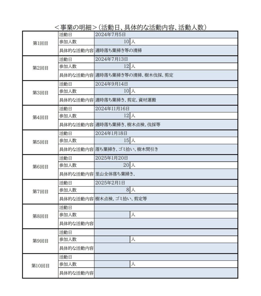 <事業の詳細>(活動日、具体的な活動内容、活動人数)