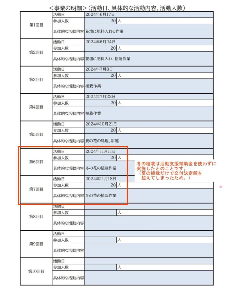 <事業の詳細>(活動日、具体的な活動内容、活動人数)