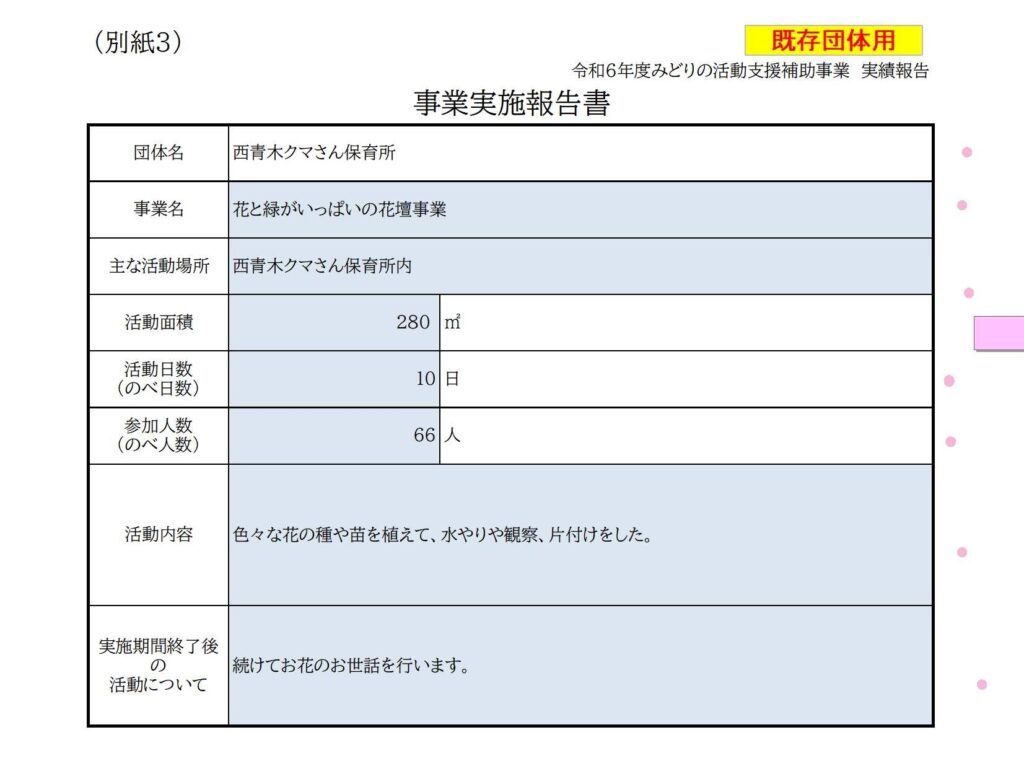 みどりの活動支援補助事業実施報告書