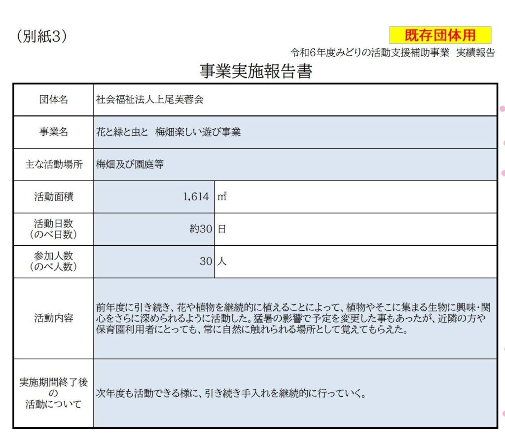 みどりの活動支援補助事業実施報告書
