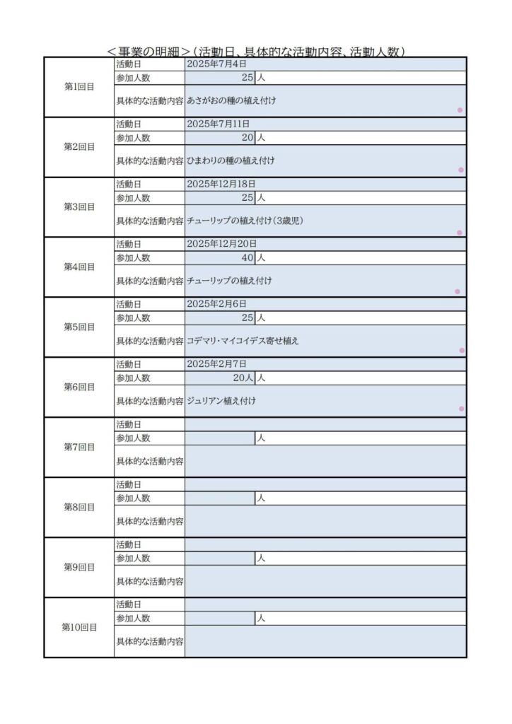 <事業の詳細>(活動日、具体的な活動内容、活動人数)