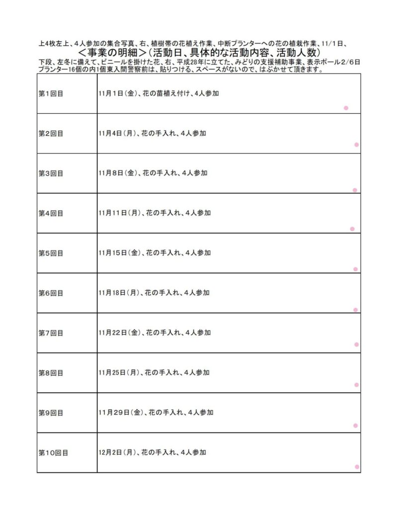 <事業の詳細>(活動日、具体的な活動内容、活動人数)