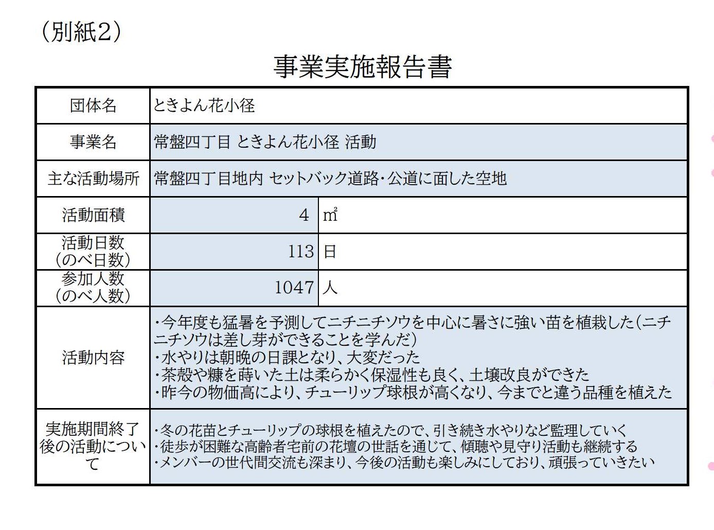 みどりの活動支援補助事業実施報告書