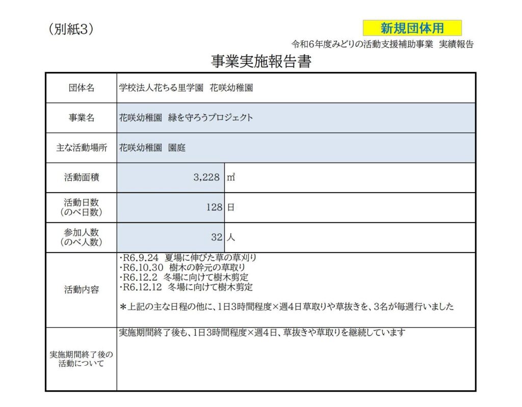 みどりの活動支援補助事業実施報告書