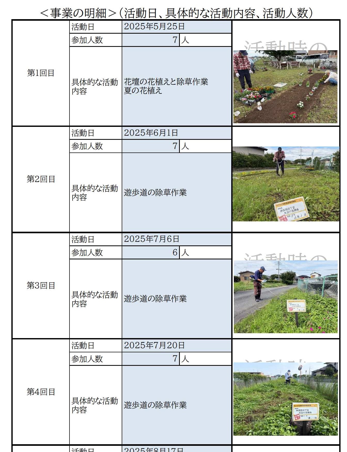 <事業の詳細>(活動日、具体的な活動内容、活動人数)