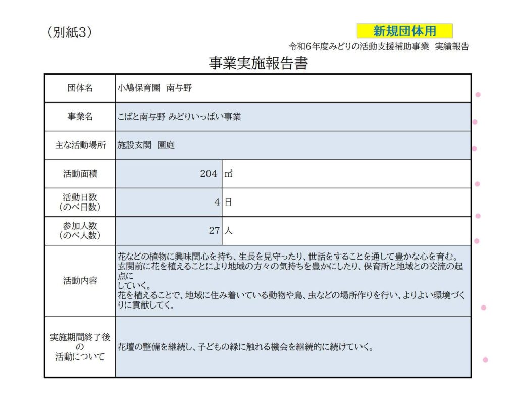 みどりの活動支援補助事業実施報告書