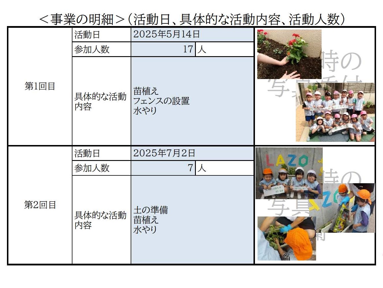 <事業の詳細>(活動日、具体的な活動内容、活動人数)