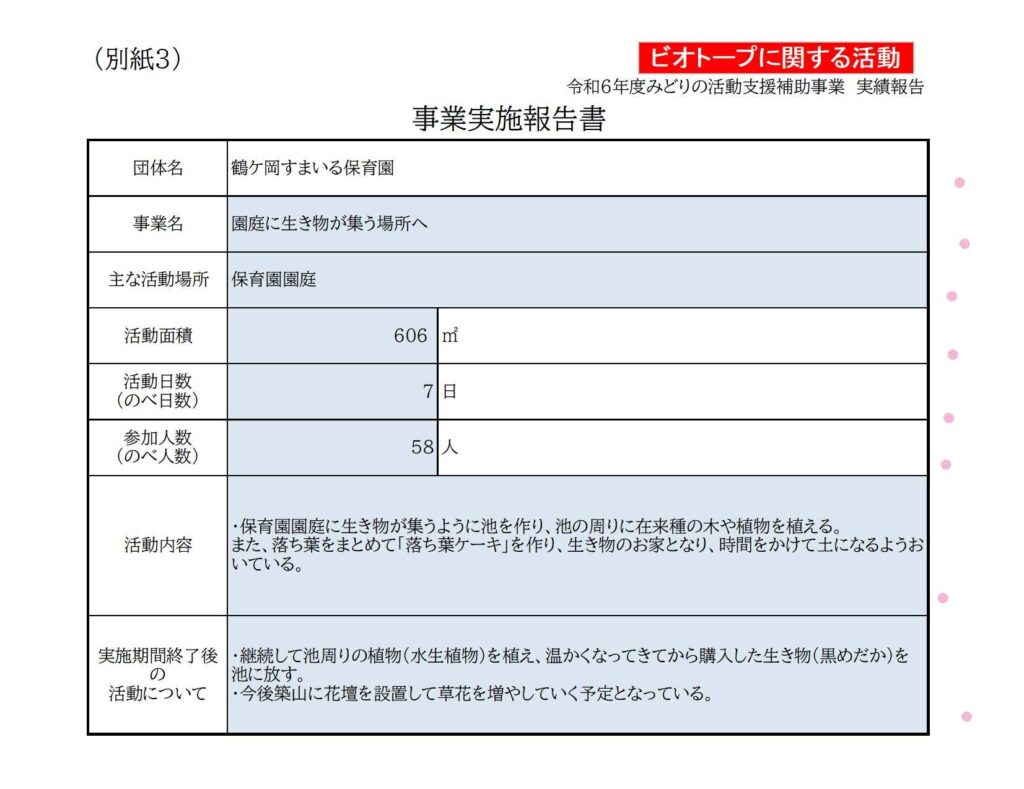 2024鶴ケ岡すまいる保育園(ビオトープ)